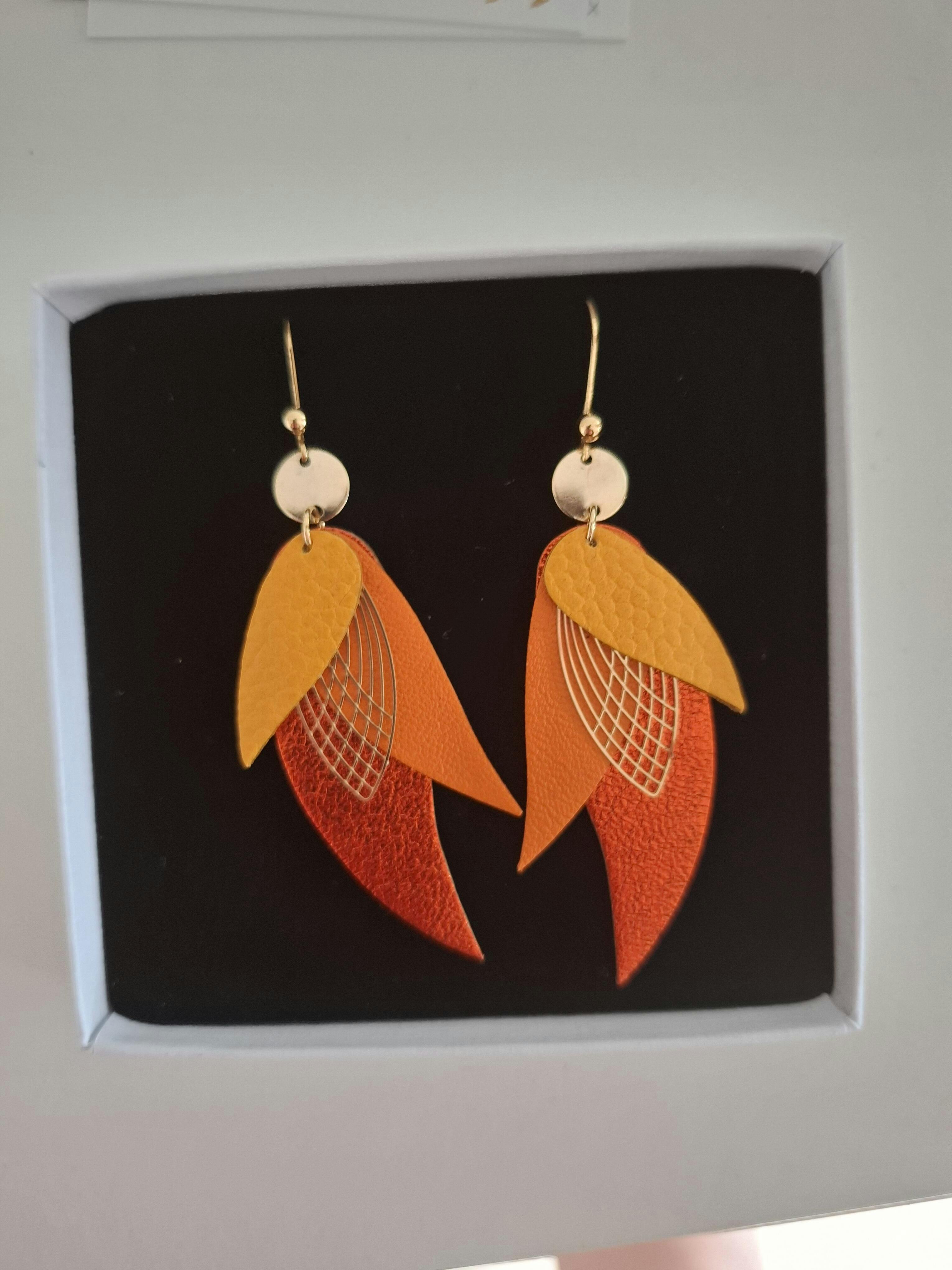 C’est ma 6ème paire de boucles d’oreille à clips Nune, et la plus légère! Je les oublie complètement! J’ai choisi des cuirs orangé et doré qui vont bien avec plein de tenues, et sont très lumineuses! Bravo !