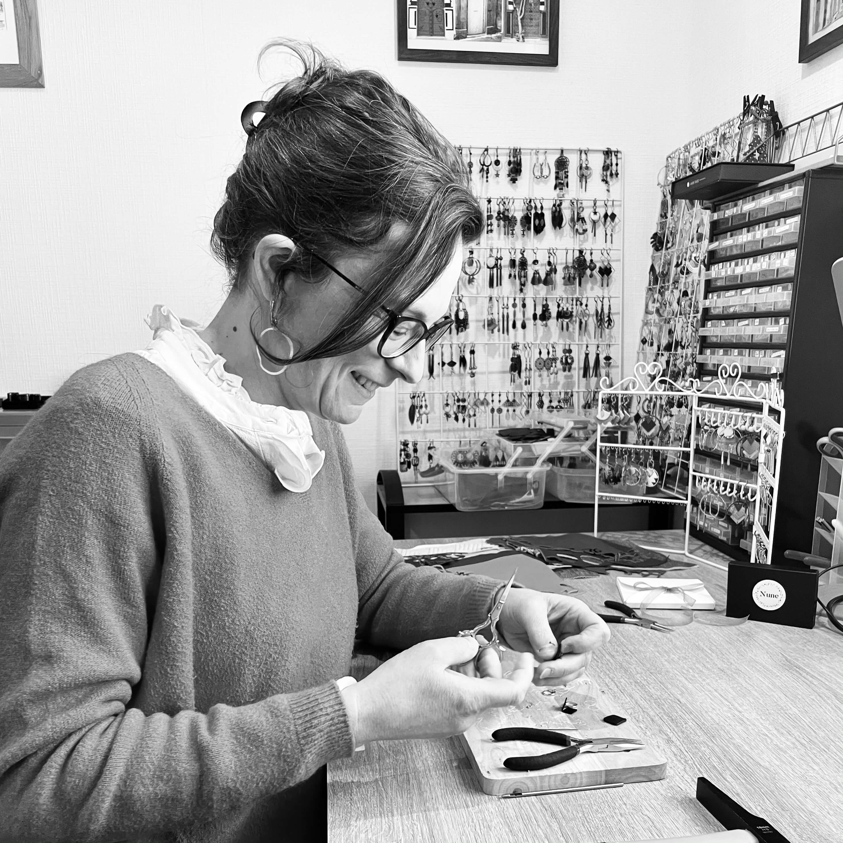 Céline, la fondatrice de Nune, imagine et fabrique les bijoux avec passion, sensibilité et exigence. Depuis peu, elle partage cette belle aventure avec Amélie, qui a rejoint l’atelier avec autant de talent que d’engagement.